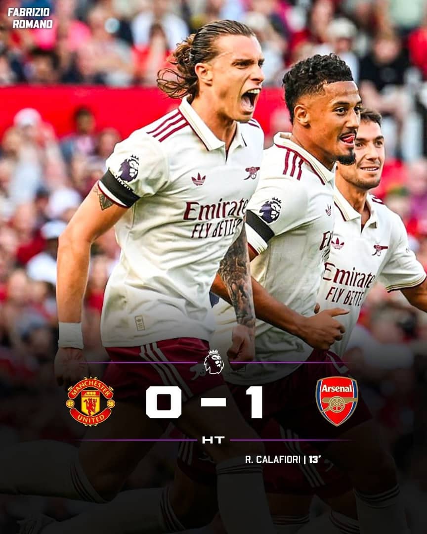 The new season sees Manchester United and Arsenal facing off in a battle to score goals and secure a victory for the 2025/2026 season. Thirteen minutes into the match, Arsenal secured one goal against Manchester United in Old Trafford, Man United’s stadium. Arsenal leads with a goal from defender Riccardo Calafiori, 0-1, away from the old Emirates Stadium. Will Arsenal make it home with a win at the final whistle? Well, I’m positive Arsenal will, especially with its squad and tactics. Viktor Gyokeres is here; let’s see how it goes. The English club might win the Premier League title this season; who knows?