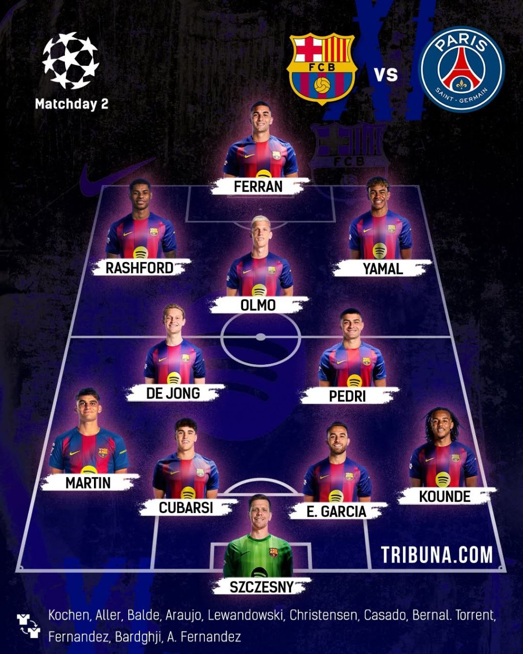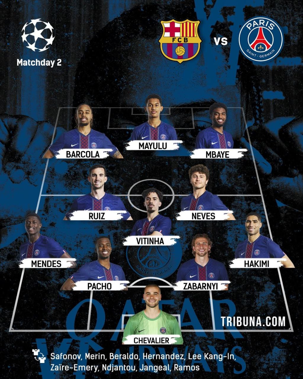 Barcelona have a lengthy absentee list which includes Raphinha, Vitinha, Khvicha Kvaratskhelia, and Ousmane Dembélé.