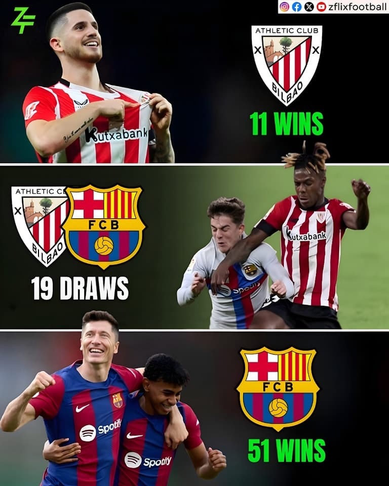 Playing for 90 reports that Barcelona have won each of their last 3 meetings with Bilbao and 7 of their last 9 encounters overall.