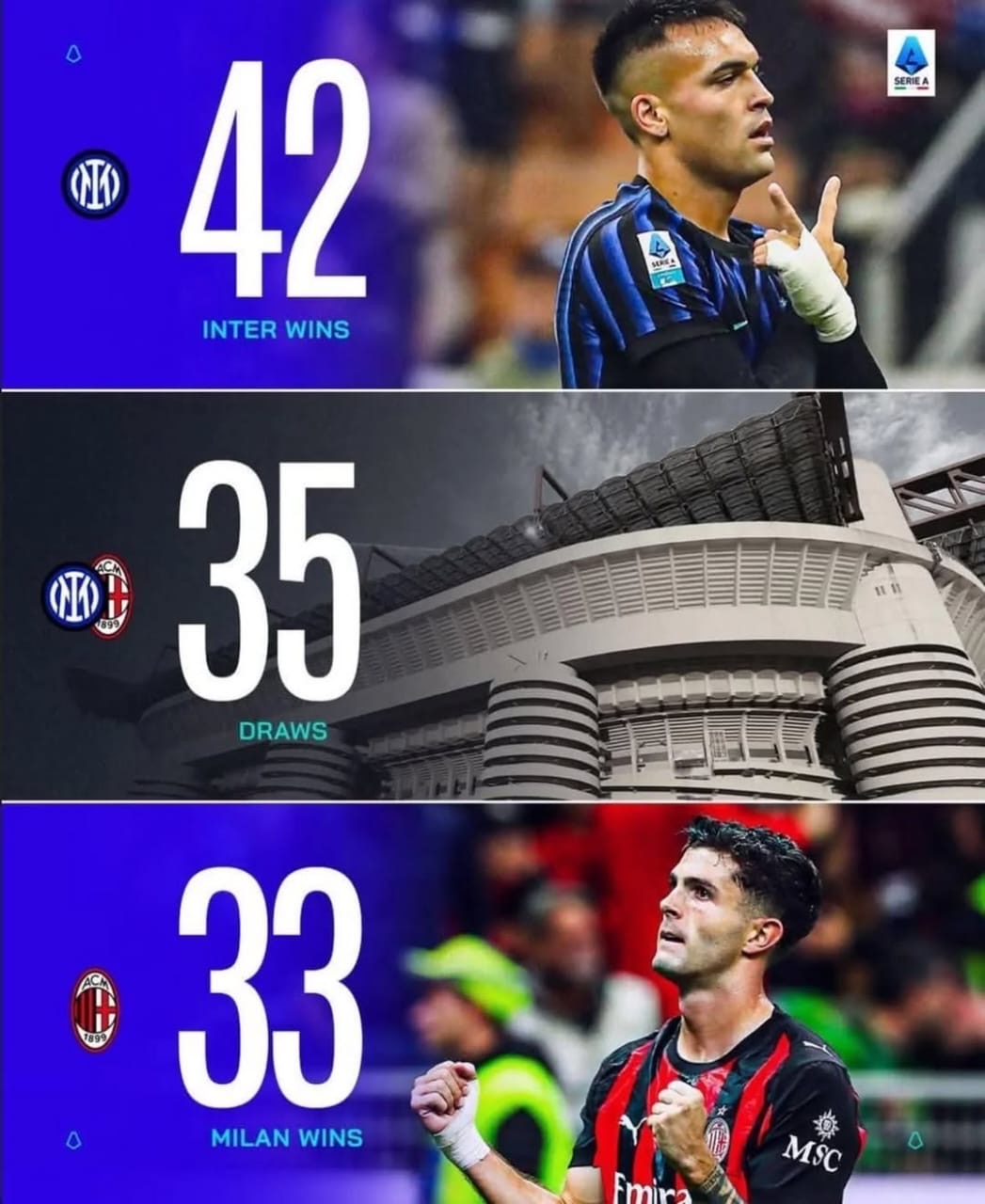 The broader historical picture reveals Inter holding the advantage with 91 victories from 244 total encounters, compared to Milan’s 82 wins.