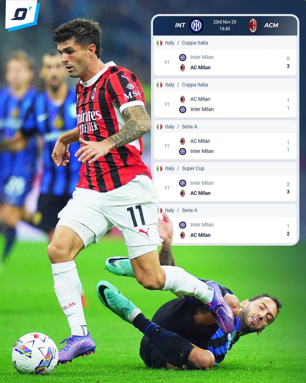 Sportskeeda’s records show AC Milan went undefeated through all five derby meetings with Inter last term across competitions (3 wins, 2 draws)—the Rossoneri haven’t enjoyed such dominance over the Nerazzurri since the period spanning November 2002 through April 2005.