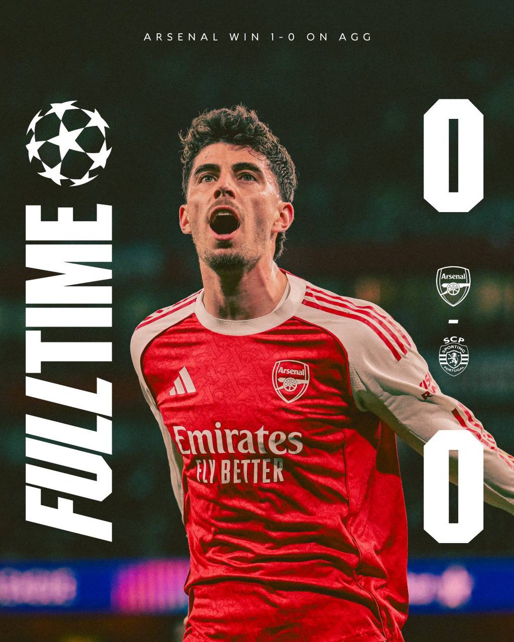 At the Emirates Stadium, Arsenal hosted Sporting CP with a slim 1-0 lead from the first leg (thanks to Kai Havertz’s late winner in Lisbon).